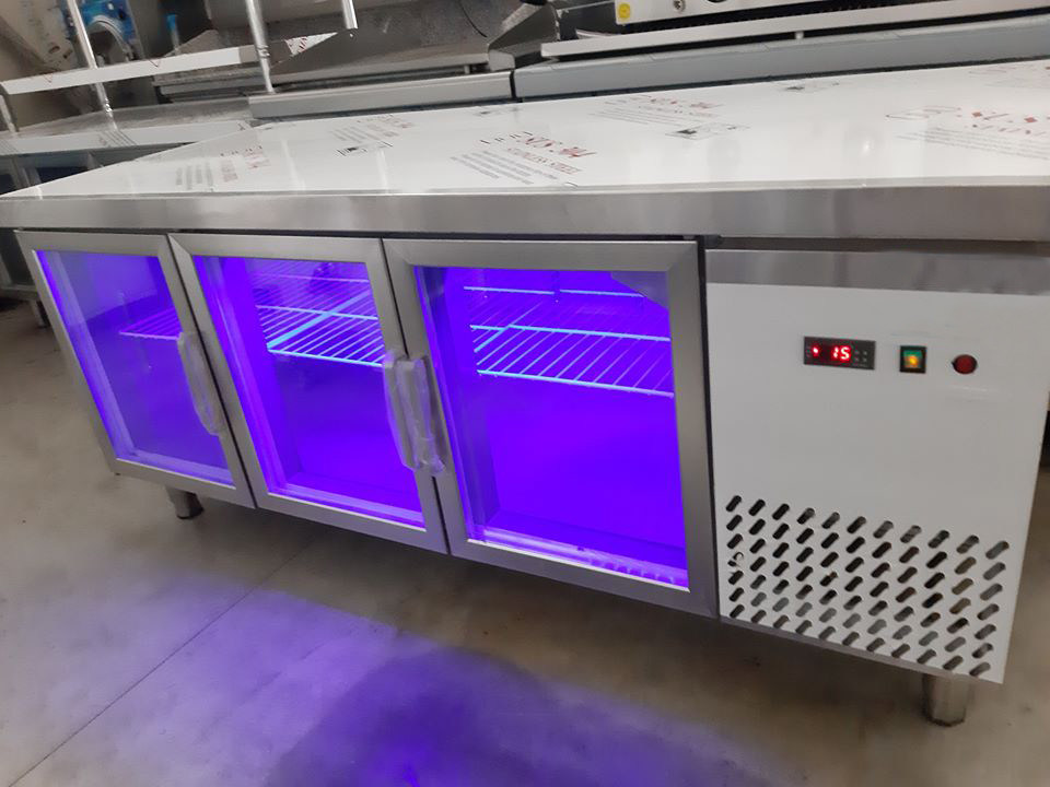 ثلاجة باب زجاجي أفقي من الفولاذ المقاوم للصدأ