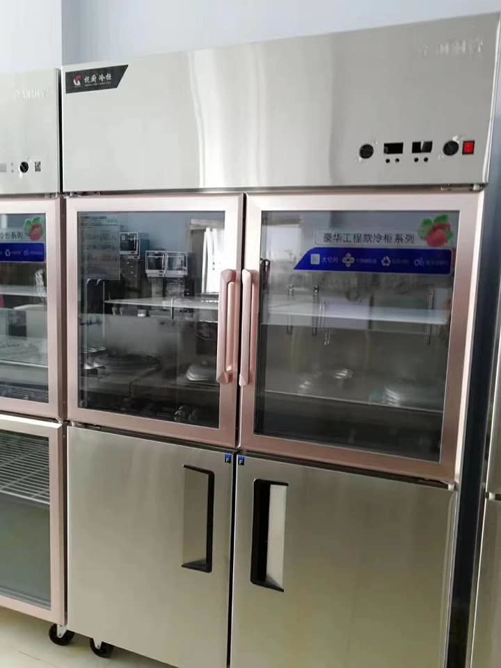 معدات تبريد الفولاذ المقاوم للصدأ للمطبخ بفريزر زجاجي مزدوج الباب