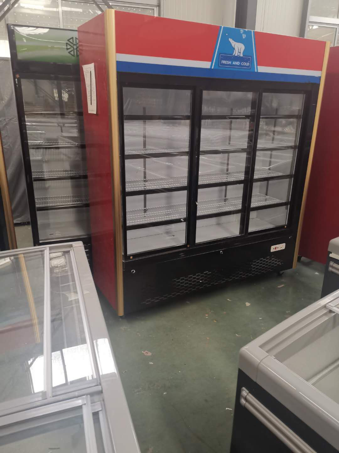 ثلاجة بيبسي كولا منزلقة تجارية بثلاثة أبواب زجاجية