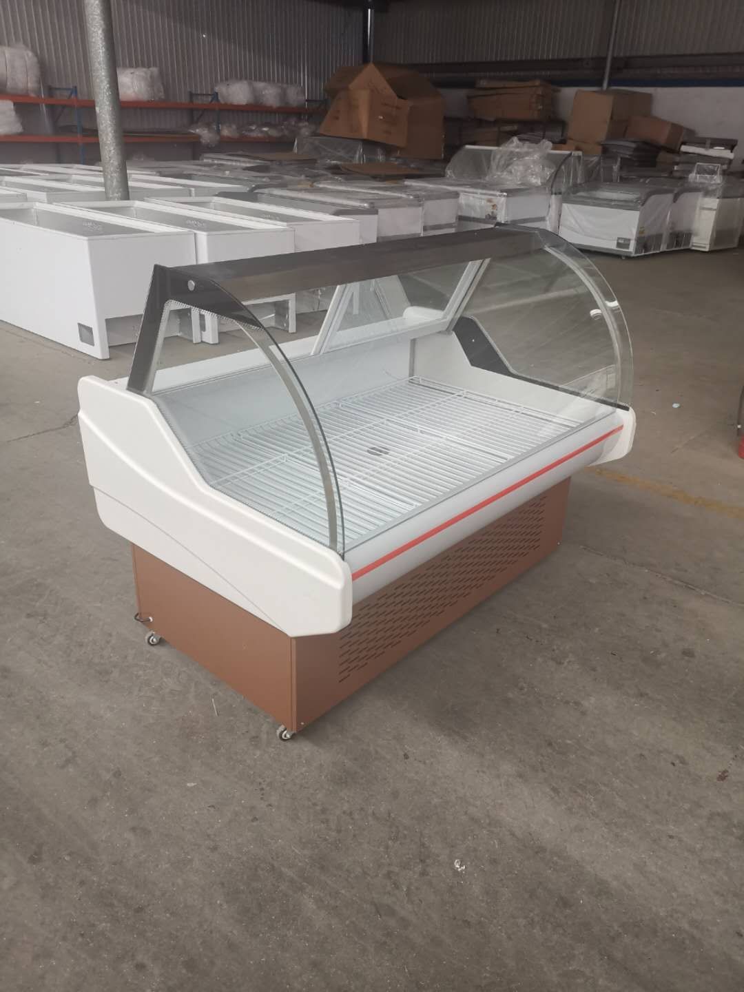 1 ، اختيار خزانة اللحوم الطازجة لتأثير عرض الزجاج المنحني ، والصحة البيئية ، ومريح للمستهلكين لاختيار المنتجات ، ولكن أيضًا تأثير العرض الممتاز ، يمكن أن يجعل المستهلكين أقوى لشراء المنتجات ، ويعزز دافع المستهلك للشراء.
