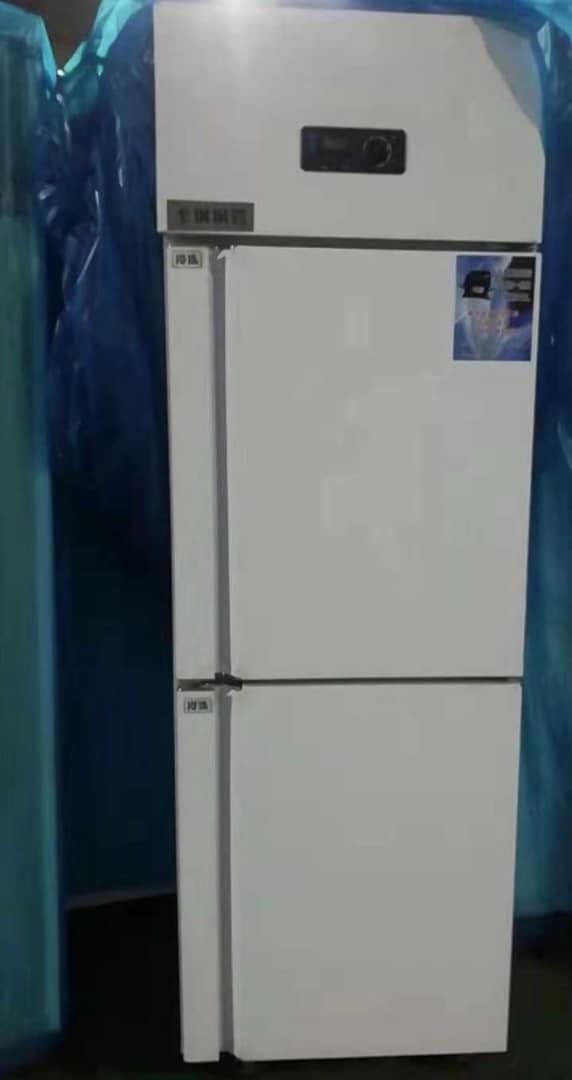 ثلاجة ببابين عمودي من الفولاذ المقاوم للصدأ للحوم والمأكولات البحرية والخضروات والفواكه